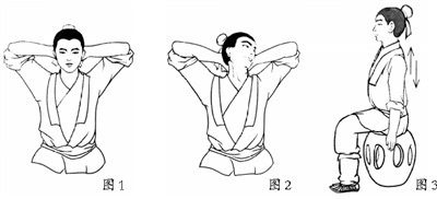 双手十指交叉,置于脑后,两肘向两侧左右打开,尽量不要让两肘之间形成夹角; 两肘向前摆动,肘尖向前,然后再向两侧打开。(如图1) 一合一开为 1 次,连续做 10~20 次。开合的速度要先慢后快,逐渐加速。